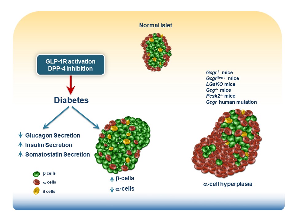 Despite the preponderance of evidence demonstrating the synthesis and secretion of bioactive GLP-1 in the small and large intestine studies have also implicated pancreatic islet a-cells as a source of bioactive GLP-1. Rodent and human islet cells cultured ex vivo secrete GLP-1 with insulinotropic activity. Moreover, experimental pancreatic injury, including surgical manipulation, chemical damage, aging, or the prolonged nutritional stress of energy dense diets, is associated with increased pancreatic production of GLP-1, as reviewed in Incretin Action in the Pancreas: Potential Promise, Possible Perils, and Pathological Pitfalls Diabetes. 2013 Oct;62(10):3316-23.